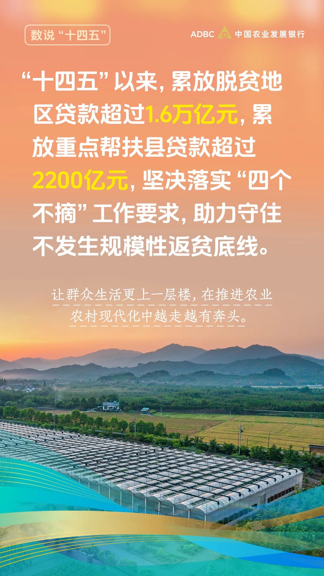 編者按:“十四五”以來,中國農業發展銀行堅決貫徹落實黨中央、國務院決策部署,持續完善服務國家戰略的響應機制,堅守農業政策性銀行主責主業,引導支農資金投向國家重大戰略、重點領域和薄弱環節,扎實做好有農發行特色的“五篇大文章”,金融支農力度不斷加大,為推進鄉村全面振興作出了積極貢獻。在“十四五”的收官之年,農發行微信公眾號策劃推出“數說十四五”圖文專題,通過一組組數據,向您介紹農發行堅定踐行金融工作政治性人民性,全力服務國家戰略和“三農”發展取得的顯著成效。