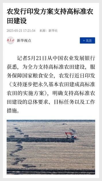 農發行印發方案支持高標準農田建設