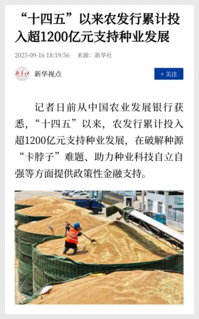 “十四五”以來農發行累計投入超1200億元支持種業發展