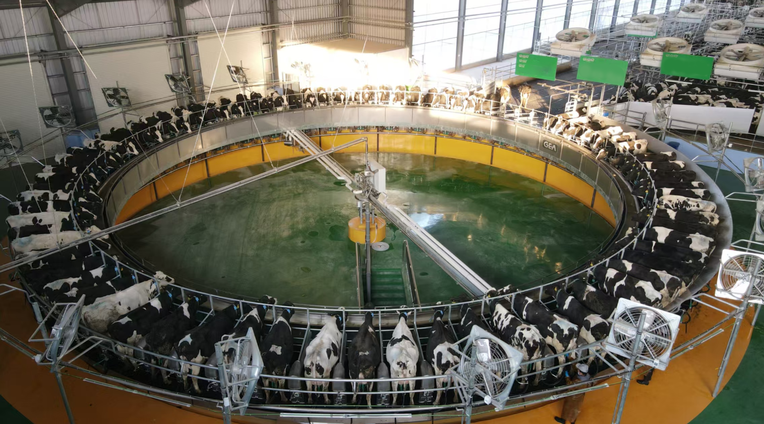 該項目建設的智慧養殖產業園構建起“青儲種植—奶牛養殖—乳制品加工—糞污循環利用”產業鏈,養殖區引入國際領先的轉盤式擠奶機和牛群健康智能監測系統,單批次擠奶效率提升50%;在種植端,通過“企業+合作社”模式,帶動當地農戶種植青儲玉米,解決部分土地“撂荒”問題;同步建設的光伏電站與生物質制氣項目使牛糞轉化為沼氣,沼渣制成有機肥反哺農田,形成“綠色種養+清潔能源”的生態閉環。該項目于2024年初逐步投產以來,填補了湖北省規?;瘍炠|奶源空白,吸引知名企業投資建設乳制品加工等項目,乳業產業鏈進一步延展完善。同時,“企業用工+土地流轉+訂單種植”模式讓3500戶農戶通過土地流轉獲得租金收入,帶動300余名本地村民實現“家門口就業”,給當地帶來了經濟增長與民生改善的“雙贏”局面。